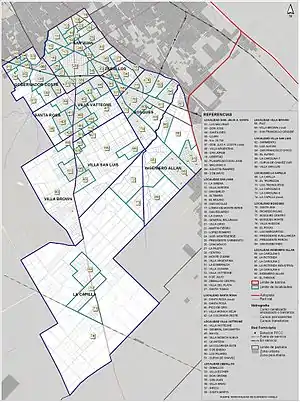 - на западе — с муниципалитетами Альмиранте-Браун, Пресиденте-Перон