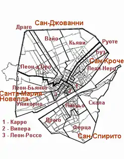 - Согласно Liber Extimationum (1269), гибеллины после прихода к власти полностью разрушили 103 дворца, 580 домов и 85 башень.