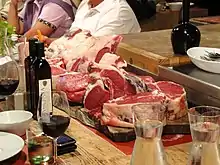 - Едят бифштекс без гарниров, с хлебом, запивая красным вином.