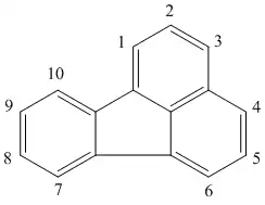 Флуорантен способен также вступать в реакции электрофильного замещения, при этом замещение идёт в положения 3 и 8, затем — в положение 9.