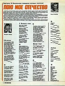 - Золотая слобода: Дымка; Май; Ночное; Мы — отсюда. Цикл стихотворений. Вступ. ст. В. Н. Крупина // Литературная Россия. — 1986. — 16 мая. — № 20. — С. 5.