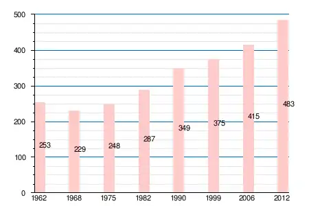 | 1962 | 1968 | 1975 | 1982 | 1990 | 1999 | 2006 | 2011 | 2012 |