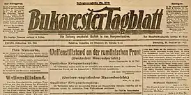 ![]() Объявление о перемирии, заключённом в Фокшанах, 11 декабря 1917 года | |