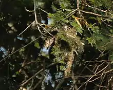 Данных о размножении мало. Гнездо строят из растительных волокон. Оно располагается на крупных ветвях высоких деревьев. В кладке два яйца. Иногда в постройке гнезда, насиживании и выкармливании птенцов принимают участие неразмножающиеся особи этого же вида.