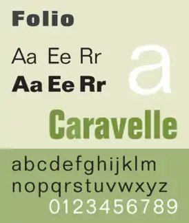 Фолио — гарнитура без засечек, разработанная Конрадом Бауэром и Вальтером Баумом в 1957 году для Bauer Type Foundry. Бауэр предоставил Fonderie Typographique Française лицензию на гарнитуру для продажи во Франции под названием Caravelle[1]. Фолио считается частью интернационального типографического стиля наряду с Гельветикой и Универсом, выпущенными в то же время; все они созданы на основе Акциденц-Гротеска[2], однако Фолио более точно следует исходной модели, чем остальные. Шрифт имел умеренный успех в США. Семейство было расширено в 1963 году, когда были добавлены жирное и полужирное уплотнённое начертания; в период с 1956 по 1969 год Бауэр выпустил 17 начертаний для Фолио[1]. Издание для фотонабора было выпущено Linotype[2].