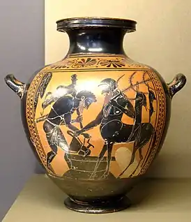 ![]() Геракл и Фол; гидрия с чернофигурной вазописью; 520—510 гг. до н. э.; Лувр | |