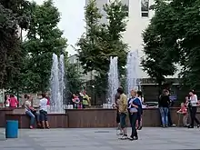 | Возле Дома Красной Армии | До 1934 | 1941—1943[9] | Возле Дома Красной Армии (бышее здание городской думы, ныне на его месте расположен Дом торговли) размещался небольшой фонтан с пятиконечной звездой[10]. |