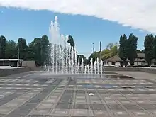 Фонтан с подсветкой был построен в сквере по проекту архитектора Дадонова[1]. Дно было украшено мозаичным панно[12]. Из-за своей пятиугольной формы фонтан получил неофициальное название «Пентагон»[19]. Реконструирован в 2011-2012 годах, ныне является музыкальным. | Действует |
