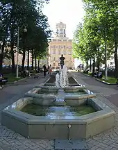 ![]() | «Мальчик с лебедем», год 1874, в Александровском сквере. Старейший фонтан в городе Минске. |
