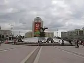 ![]() | На Октябрьской площади возле Дворца Республики. Самый большой в городе фонтан - состоит из 1300 струй. |
