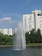 ![]() | На канале в районе улицы Филимонова. Самая высотная композиция в городе – струи достигают до 20 метров. |