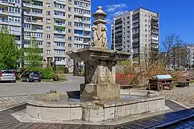 Первоначально фонтан был расположен рядом с гаупвахтой Кёнигсбергского замка, где пережил авианалёты британской авиации на город в 1944 году[3]. После войны фонтан был перенесён во двор Университетской больницы на Друммштрассе 25-29 (ныне — Портовая больница на ул. Больничной, 34-38).