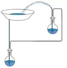 Прибор состоит из трёх сосудов, помещённых прямо один над другим и сообщающихся между собой: два нижних закрытые, а верхний имеет форму открытой чаши. Средний сосуд практически полностью заполнен водой, также вода наливается в верхнюю чашу. Вода, по открытой трубке, доходящей фактически до дна, течет в нижний сосуд. Воздух в нижнем сосуде сжимается, повышая там давление. По трубке, идущей от верхней части нижнего сосуда практически до верхней части среднего сосуда, давление через воздух передается в средний сосуд. Повышение давления в среднем сосуде заставляет воду подниматься по трубке, проведённой почти от дна среднего сосуда в верхнюю чашу, где из конца этой трубки, возвышающейся над поверхностью воды, и бьёт фонтан.