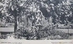 В небольших гротах по сторонам лестницы Камероновой галереи Екатерининского сада была установлена скульптура из металла «Леда с лебедем» в виде фонтана неизвестного автора. Во второй половине XIX века она была перенесена, уже не как часть фонтана, а отдельная скульптура на гранитную террасу Руски и простояла там до Великой Отечественной войны.