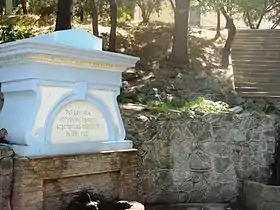 ![]() В 2010 году надпись гласит «Сей фонтанъ устроенъ Грекомъ Апостоломъ Савопуло въ 1881 году» | |