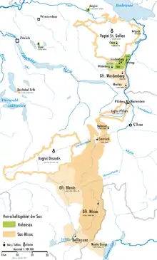 Его сыновья Ульрих и Генрих стали аббатом и фогтом в одноимённом аббатстве. Между 1208 и 1213 годами они стали фогтами над аббатствами Дисентис и Пфеферс, а в 1212 году поддержали Фридриха II в его борьбе за императорский титул и получили от него обширные земли и богатства. Чтобы защитить свои обширные владения, семья построила замок Кланкс в Аппенцелле, замок Гогенсакс в Зеннвальде, и замок в Мезокко.[1][2] В 1220 году они расширили свои южные владения до долин Левентина и Бленио[3]