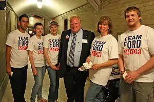 Форд участвовал в выборах на должность мэра Торонто в 2014 году, однако в сентябре снял свою кандидатуру из-за проблем со здоровьем. Вместо него в выборах принимал участие его брат Даг Форд, который набрал 33,73 % голосов, заняв второе место. Первое место с 40,28 % занял Джон Тори. Тори вступил в должность 1 декабря, став при этом 65-м мэром города. Форд же объявил о своих намерениях участвовать в следующих выборах мэра, в 2018 году.