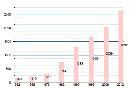 | 1962 | 1968 | 1975 | 1982 | 1990 | 1999 | 2006 | 2011 | 2012 |