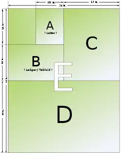 | Ledger или Tabloid | ANSI B | 279 × 432 | 11 × 17 | 1 : 1,5455 | A3 (297 × 420) | Tabloide |