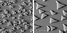 Форма двумерных островков (англ. 2D island shape) — в зависимости от условий роста островки могут иметь различную форму. В соответствии с особенностями морфологии островки можно разделить на два широких класса: 1) разветвленные (ramified) островки, т. е. островки дендритного фракталоподобного типа, имеющие шероховатые края; 2) компактные островки, т. е. островки, имеющие форму выпуклых многоугольников с относительно прямыми и равноосными краями.