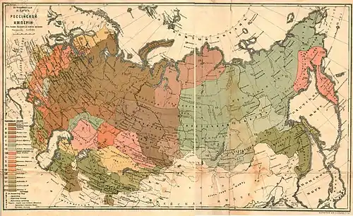 - Цинской империей и затем Китайской республикой — успешно продвигавшейся в Восточном Туркестане, однако допустившей российское освоение Южной Сибири, Маньчжурии, Приморья, Квантунского полуострова (отнятого Россией у Японии, которая должна была его осваивать по итогам китайско-японской войны 1894—1895), ставшей в итоге объектом раздела сфер влияния мировых держав, допустившей в эпоху Китайской республики фактическую утрату Внешней Монголии, а также вынужденной уступить России Урянхайский край[16];