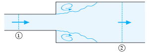 - V1 и V2 — средняя скорость потока, соответственно, перед и за местным расширением потока.