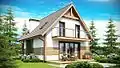 ![]() | Большую популярность получают в жилых домах купольные крыши, характерной особенностью которых является их плавный переход в стены дома. В домах с подобными крышами непосредственно стены занимают до 1/5 от общей площади стен и крыши. Купольные сооружения используются итак же для перекрытия части здания в её верхней части. Изготавливаются из каркаса изогнутой формы. Могут использоваться пластиковая черепица, оцинкованная сталь. А также более мягкие материалы — битумная черепица, стеклоизол, рубероид.