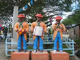 ![]() Традиционный состав аккомпанемента: барабан, аккордеон и треугольник. Каруару, штат Пернамбуку | |