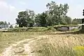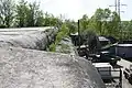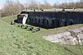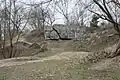 Фрагменты форта IV. На переднем плане видна часть бетонной потерны. За ней — кирпичный каземат в земляном валу
