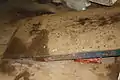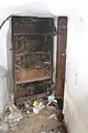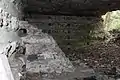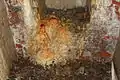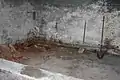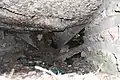 Внутри каземата-убежища какие-то вандалы (возможно чёрные копатели) разрушают пол.