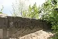 Сохранившаяся стена бетонного убежища форта IV