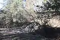 Панорама каземата (в центре) и уцелевшей потерны - справа за зарослями.