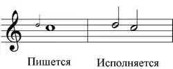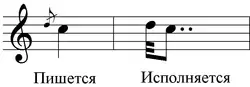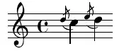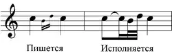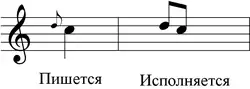Короткий форшлаг (acciaccatura) обозначается мелкой перечёркнутой нотой. Исполняется за счёт длительности основной или предшествующей ноты. Может состоять более чем из одной ноты.