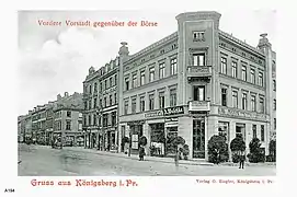 Фондовая биржа Кёнигсберга была расположена на набережной Прегеля, между Зелённым и Музыкальным мостами. Форт Фридрихсбург существовал к западу от Переднего Форштадта с 1657 по 1910 год.