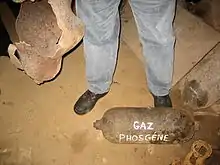 Фосге́н (дихлорангидрид угольной кислоты) — химическое вещество с формулой C(O)Cl2, при нормальных условиях — бесцветный чрезвычайно токсичный и удушливый газ с запахом прелого сена[3].