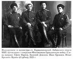 - Март 1920 — Будучи отрезан от Кубанской армии, ушёл с небольшим отрядом в горные станицы.