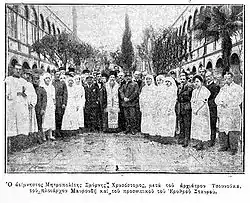 Экипаж и медицинский персонал с триумфом прошли к греческому госпиталю Св. Харлампия, женщины и дети осыпали их цветами. Миссия приступила к обустройству госпиталя.