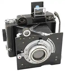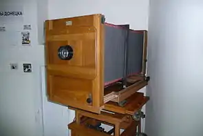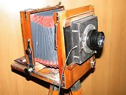 | Фотокор № 1 1930-1941 | ![]() | ГОМЗ | Складной пластиночный шкальный фотоаппарат с размером кадра 9×12 см. Центральный затвор. |