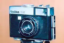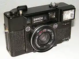 | Эликон-3 Вторая половина 1980-х годов | ![]() | БелОМО | Малоформатный шкальный фотоаппарат. Центральный затвор, автомат с приоритетом единственной выдержки. Встроенная фотовспышка с принудительным включением. Видоискатель оптический. |