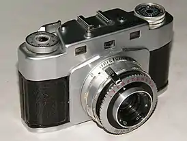 | Москва-1 1946-1946 | ![]() | КМЗ | Среднеформатный шкальный фотоаппарат, складной (с мехом) корпус. Центральный затвор. Плёнка типа 120, размер кадра 6×9 см. Камера создана на базе фотоаппарата «Zeiss Ikonta» (вариант «C», модель 521/2) немецкой фирмы Zeiss Ikon. |