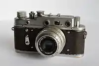 | ФЭД 1934-1955 | ![]() | ФЭД | Малоформатный дальномерный фотоаппарат. Шторный затвор, объективы сменные, крепление — резьба М39×1/28,8. Копия немецкого фотоаппарата «Leica II». |