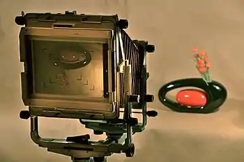 Подвижное соединение передней и задней стенок, которые чаще называют «досками» или «стандартами», позволяет перемещать их друг относительно друга, при сохранении светонепроницаемости благодаря меху. Для этого обе стенки крепятся на общем основании с помощью шарниров, которые могут стопориться специальными зажимами. Перемещением и наклоном досок осуществляют подвижки, позволяющие исправлять перспективные искажения и менять положение резко изображаемого пространства. Одна из стенок может крепиться к основанию с помощью реечного механизма для фокусировки объектива. С небольшими изменениями камеры прямого визирования используются до настоящего времени для студийной, архитектурной и некоторых других видов фотографии, допускающих съёмку со штатива. Большинство современных фотоаппаратов этого типа являются крупноформатными и представлены несколькими разновидностями: карданные, дорожные, пресс-камеры и технические. Почти ни один из них не оснащается никакими вспомогательными устройствами, даже затвор не считается штатным узлом и может отсутствовать[5]. Исключение составляют пресс-камеры, почти всегда имеющие встроенный фокальный затвор и дополнительную визирно-дальномерную систему[6].