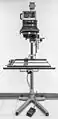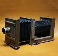 В начале XX века некоторые производители фототехники освоили выпуск специализированных увеличительных аппаратов аналогичной конструкции. Между двумя подвижными досками с негативом и фотобумагой устанавливалась ещё одна с объективом, а пространство между всеми тремя изолировалось с помощью двух фокусировочных мехов[5]. Устройство были эквивалентно двум фотоаппаратам с общим объективом, и стало первым прообразом современных фотоувеличителей. Упрощённый вариант под названиями «ручной увеличительный аппарат» или «увеличительный конус» предназначался для фотолюбителей и был рассчитан на постоянный коэффициент увеличения с фиксированной фокусировкой объектива. Для экспонирования использовался дневной свет от небосвода[6]. Наиболее совершенные модели оснащались сменными кассетами для фотобумаги и простейшим фотозатвором[7].