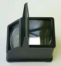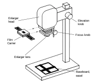 Фотоувеличи́тель — проекционный аппарат, предназначенный для оптической фотопечати. Устройство создаёт действительное изображение негатива (реже — диапозитива) на фотобумаге или позитивной листовой фотоплёнке при помощи искусственного источника света. Спроецированное изображение чаще всего увеличено по сравнению с оригиналом, но может быть и уменьшенным, или совпадать с ним по размерам. Фотоувеличители могут иметь горизонтальную или вертикальную конструкцию, но наибольшее распространение получили аппараты с вертикальным расположением оптической оси[1]. При этом достигается наибольшая компактность и удобство использования.