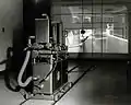 Первый опыт оптической фотопечати связан с появлением высокочувствительных желатиносеребряных фотобумаг с химическим проявлением, выпуск которых налажен в 1879 году Джозефом Суоном. Для увеличения использовали фотоаппарат, кадровое окно которого освещалось дневным светом через отверстие в стене затемнённой фотолаборатории. Негатив устанавливался с внутренней стороны матового стекла, и объектив строил его изображение на вертикальном экране, где закреплялся лист фотобумаги[4]. При другом способе печать могла вестись в незатемнённом помещении с помощью двух фотоаппаратов разных форматов, установленных объективами навстречу друг другу. Объектив одной из камер убирался, а стык между объективными досками изолировался от света. К матовому стеклу фотоаппарата меньшего формата крепился негатив, а в кассету более крупного заряжалась фотобумага. Для подсветки негатива использовался отражатель из белой бумаги, направляющий рассеянный свет от окна.
