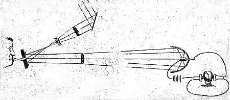 Действие этого прибора основано на свойстве селена изменять электропроводимость под действием световых лучей, отражаемых от зеркала, вибрирующего под влиянием звука.