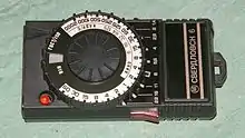 Указанное стрелкой значение переводится в экспозиционные параметры с помощью так называемого калькулятора, который представляет собой набор соосных поворотных дисков со шкалами светочувствительности, диафрагмы, выдержки и частоты киносъёмки[15]. При установке исходных параметров и результата замера происходит их относительное вращение, совмещающее правильные экспопары на дисках выдержек и диафрагм. В некоторых экспонометрах (например, «Свердловск-4») калькулятор автоматически устанавливается в правильное положение при достижении «нулевой» индикации. Все полученные экспопары обеспечивают правильную экспозицию в соответствии с законом взаимозаместимости. Аналогичное устройство имеют встроенные несопряжённые экспонометры фото- и кинокамер.