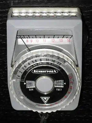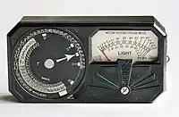 Фотоэкспонометр, экспоно́метр (лат. expono) — фотометрическое устройство для инструментального измерения яркости или освещённости снимаемых объектов при вычислении корректной фотографической экспозиции. Большинство экспонометров позволяют определить как экспозиционное число, так и оба экспозиционных параметра, а также контраст снимаемой сцены, немаловажный в профессиональной киносъёмке[1]. До конца 1950-х годов чаще всего использовалось название экспози́метр. Все экспонометры, предназначенные для измерения экспозиции в плёночной фотографии и кинематографе, пригодны для измерения экспозиции в цифровой фотографии, поскольку условные значения светочувствительности цифровых фотоаппаратов выбраны в соответствии с сенситометрическими параметрами желатиносеребряных светочувствительных материалов[2].