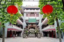 В районе Наньхай расположен обширный буддийский комплекс, посвящённый богине Гуаньинь. Храм был основан в период правления императора Тай-цзуна, затем он несколько раз перестраивался, разрушался и восстанавливался; современный вид приобрёл после реконструкции 1996 года. Вдоль центральной оси комплекса расположены ворота пайлоу, зал Небесных царей, зал Махавира и зал Гуаньинь. Также в состав комплекса входят зал Шестого патриарха, зал настоятеля храма, трапезная монахов, зал приёмов, зал медитации, колокольня, барабанная башня, несколько ворот, пруд с мостиками и беседками.