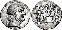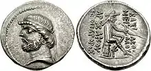 ![]() Монета Фраата II, отчеканенная в Селевкии в 129 г. до н. э. | |